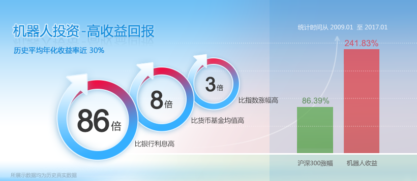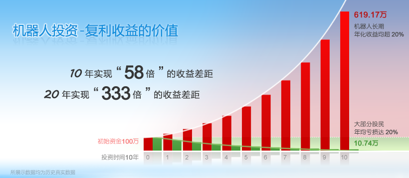 智能决策和机器人交易,改变传统投资理念和操作方法,用智能的策略和全自动的执行力,确保了投资的高效和准确率,有效控制市场风险和行为风险,让实际收益不断接近理论收益,让投资更轻松,收益更可靠。